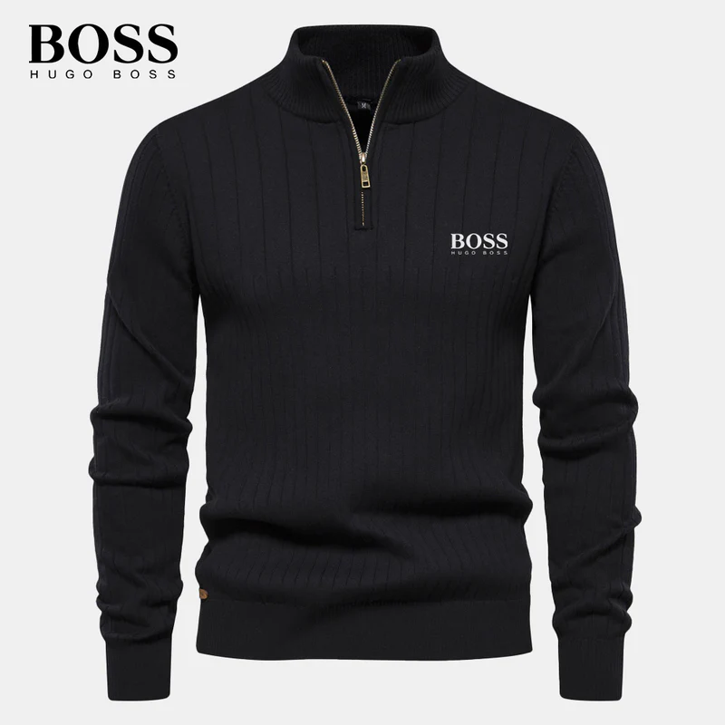 Discover this men’s zip-neck sweater, designed for those who appreciate elegance and comfort. With its slim fit and ribbed fabric, this sweater offers a modern look while ensuring optimum comfort. Its sturdy zipper and meticulous details testify to its exceptional finish.