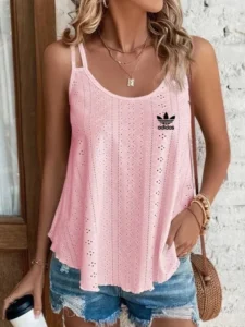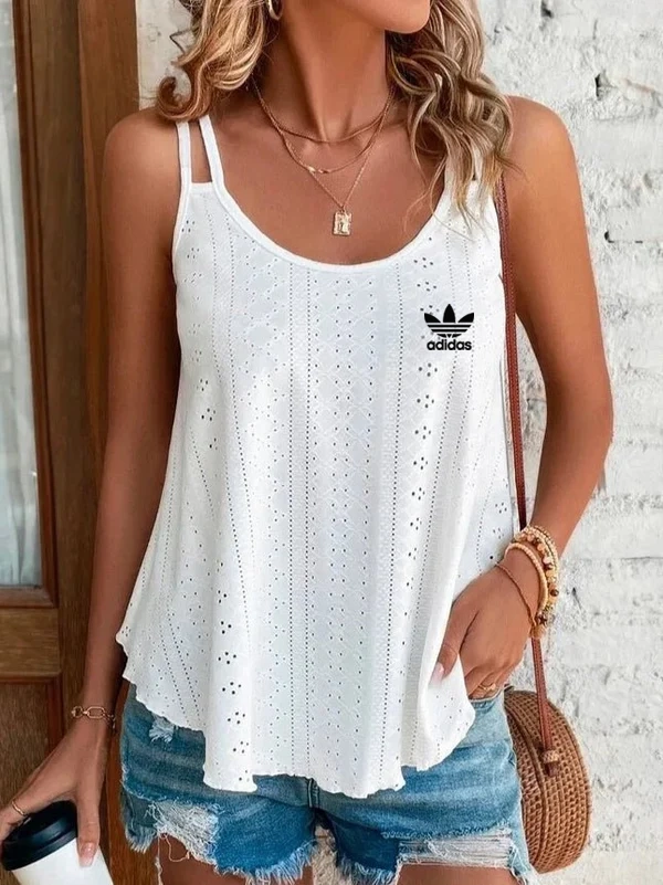 The Adidas – New Casual T-Shirt redefines casual sophistication with a breezy, effortlessly stylish look. Featuring a delicate eyelet design and double shoulder straps, this piece brings a fresh, feminine touch to any summer outfit. The soft white hue and flowy silhouette make it ideal for everything from beachside strolls to weekend brunches.