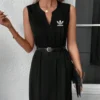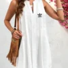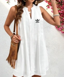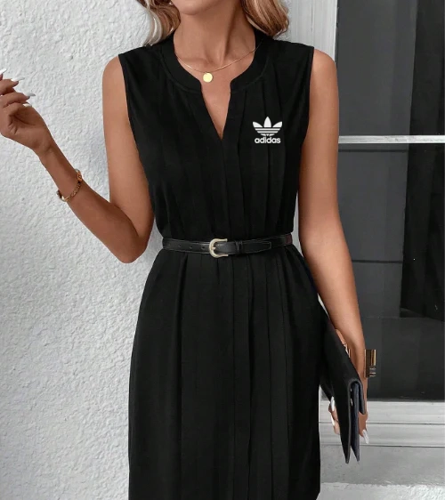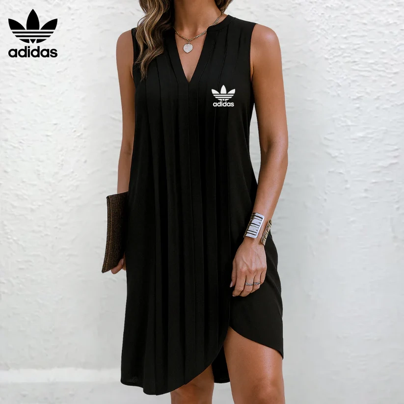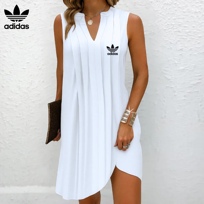This Adidas – New Elegant Dress combines refined style with a relaxed silhouette, offering a sophisticated look suitable for both casual outings and more polished occasions. Its sleeveless design provides a fresh and airy feel, while the subtle pleated front adds depth and movement to the overall shape.
