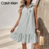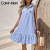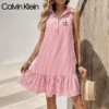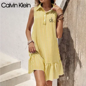 Finished with the classic “ck Calvin Klein” logo on the chest, this dress balances designer flair with understated class. Pair it with white sneakers for a relaxed daytime ensemble or add a straw hat and sandals for the ultimate vacation-ready look. It’s your go-to piece for capturing that polished-yet-carefree aesthetic.