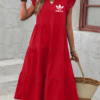 Combining classic fashion with an unexpected statement, this dress proudly displays the iconic Adidas trefoil logo on the chest—merging streetwear heritage with contemporary design. It’s the ultimate fusion of laid-back luxury and athletic identity, giving your outfit a bold, trend-forward personality without sacrificing softness or elegance.