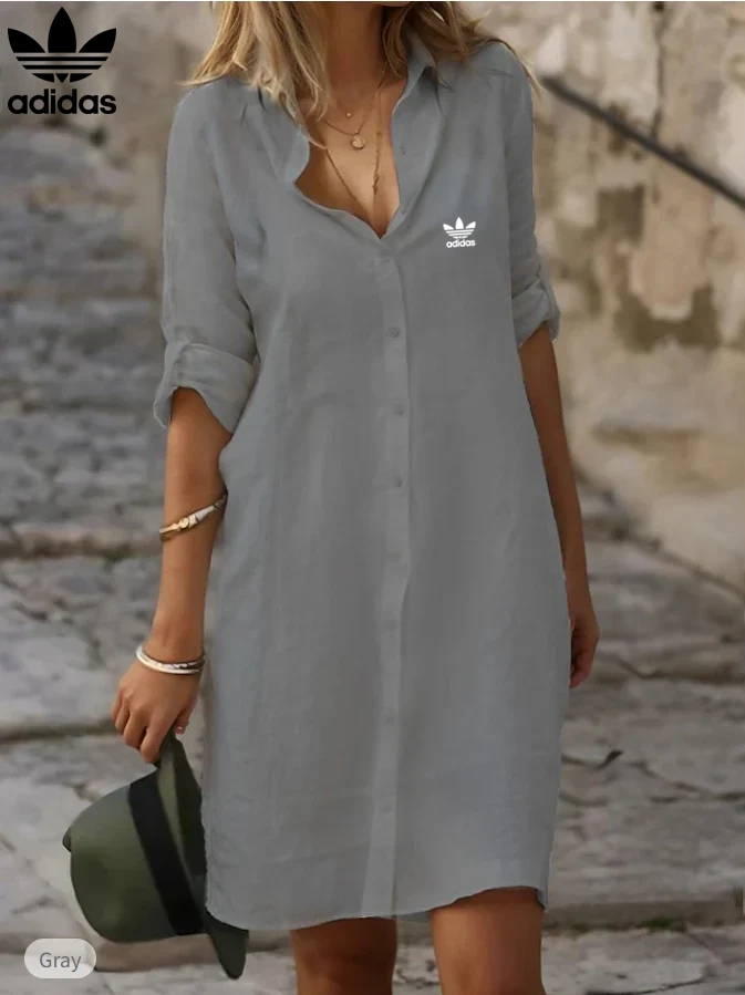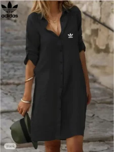The Adidas – New Shirt Dress combines casual charm with the iconic sporty touch of the brand. Its relaxed yet flattering cut makes it perfect for those who value both comfort and style, while the button-down design adds a hint of sophistication.