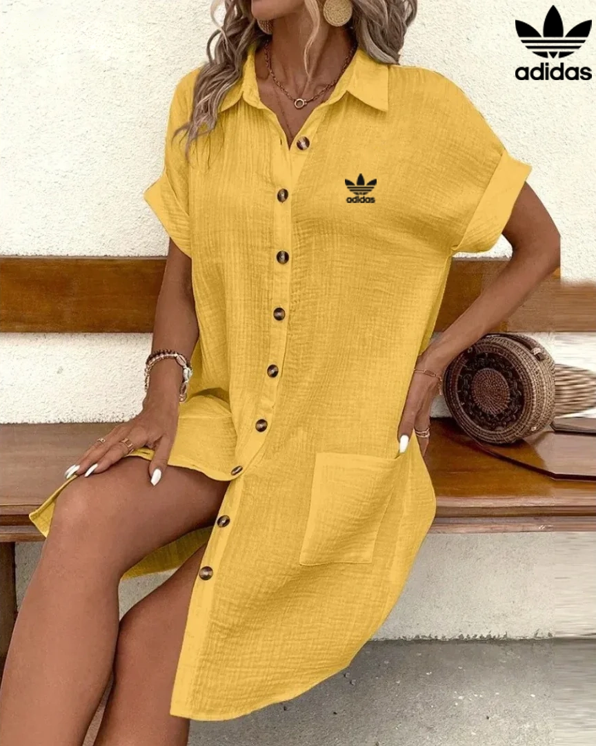 Elevate your everyday wardrobe with the Adidas – New Shirt Dress, a perfect harmony of style and comfort. Crafted from a lightweight, subtly textured fabric, it drapes fluidly and feels luxuriously soft, making it your go-to choice for sun-soaked days.