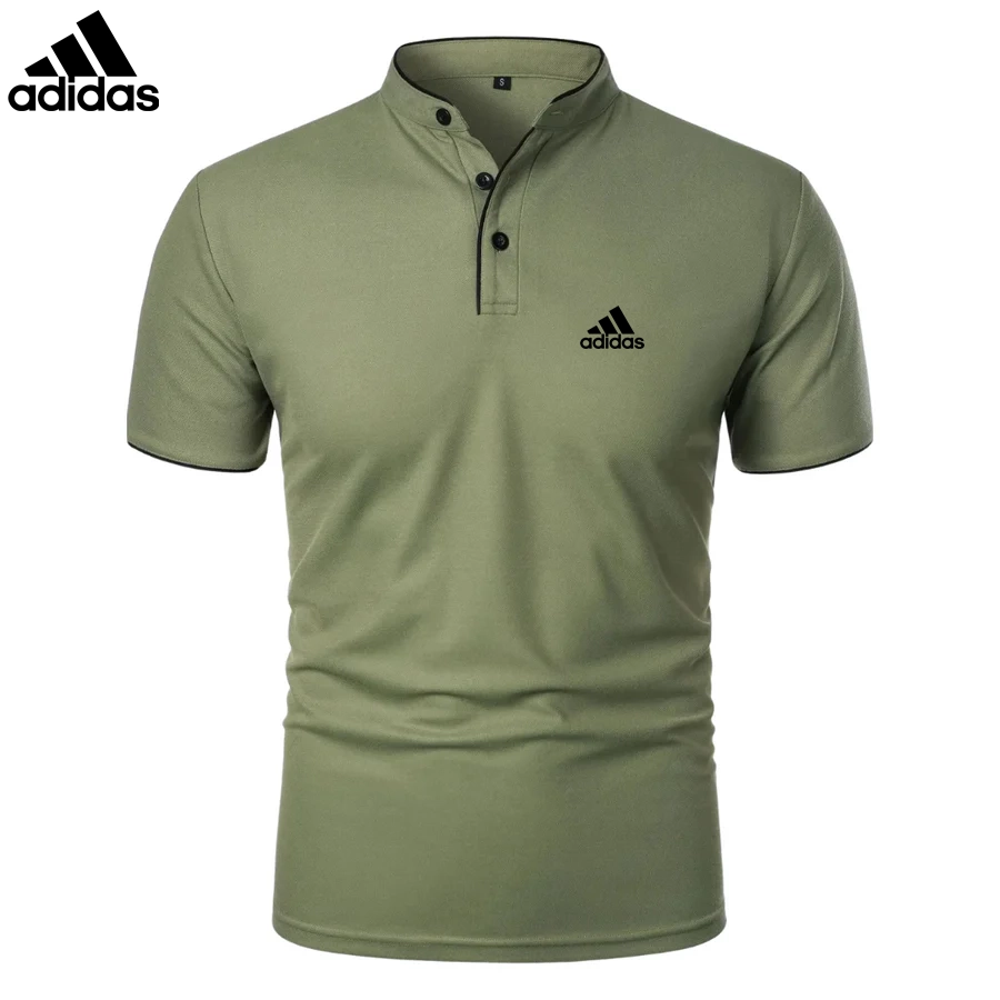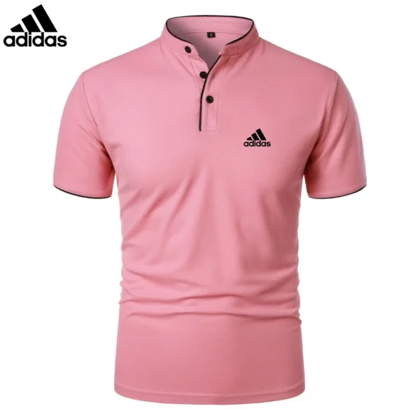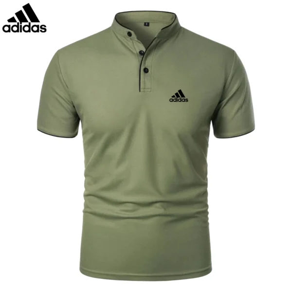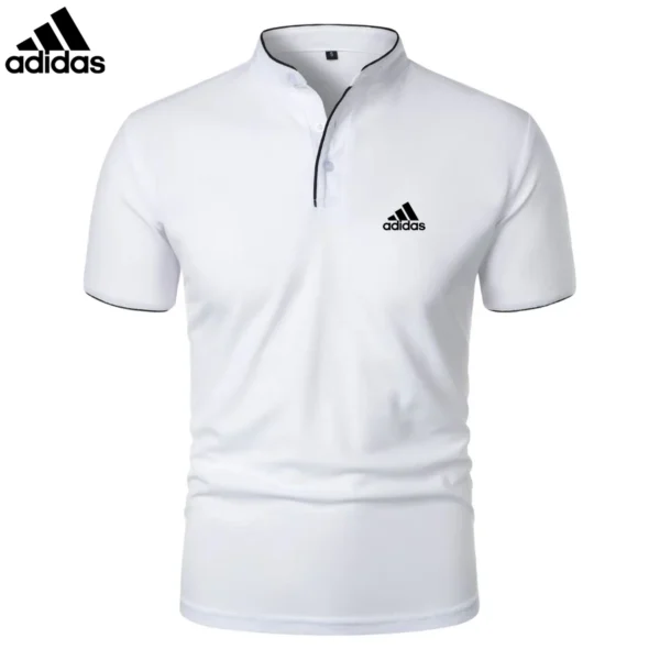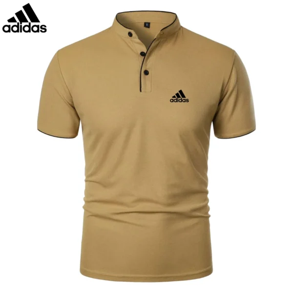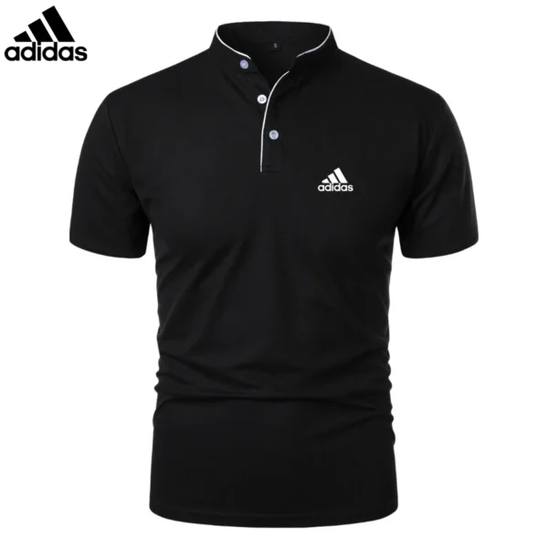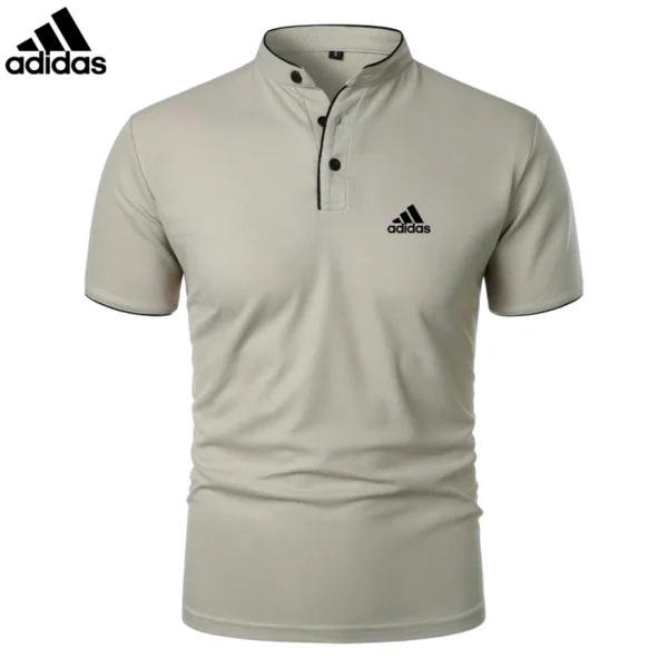 The mandarin collar with contrast piping adds a touch of sophistication, while the slim fit design enhances the silhouette. Featuring a three-button placket for adjustable styling, this Adidas – Premium Casual Polo is perfect for any setting.